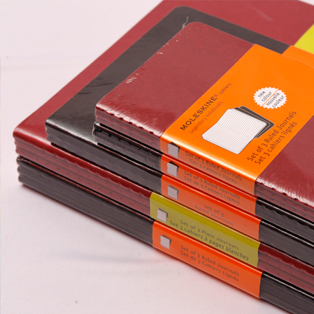 The journals for day-to-day use, each Cahier notebook has a heavy-duty cardboard cover with visible stitching on the spine that matches the colour of the cover. Slim, soft and light - Cahier journals suit any occasion. They come packaged in sets of three in Pocket, Large and XL sizes.