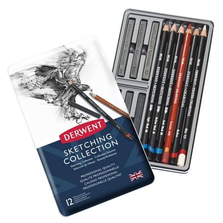 Mix it up with the muted coloured pencils in the Drawing range, create line and wash sketches with Watersoluble Sketching, get drawing with Derwent Graphic graphite pencils, or use Natural Graphite and Compressed Charcoal to create bold landscape.